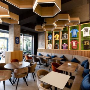 We had the pleasure of collaborating on creating an extraordinary bar interior where football meets elegance and comfort.